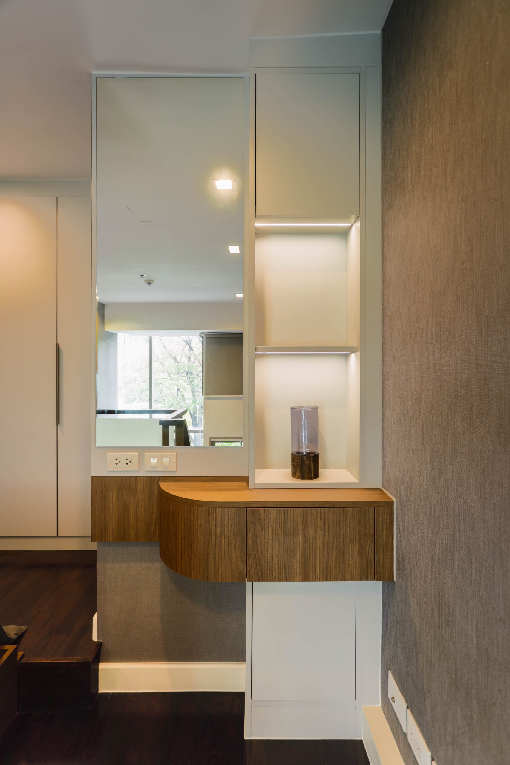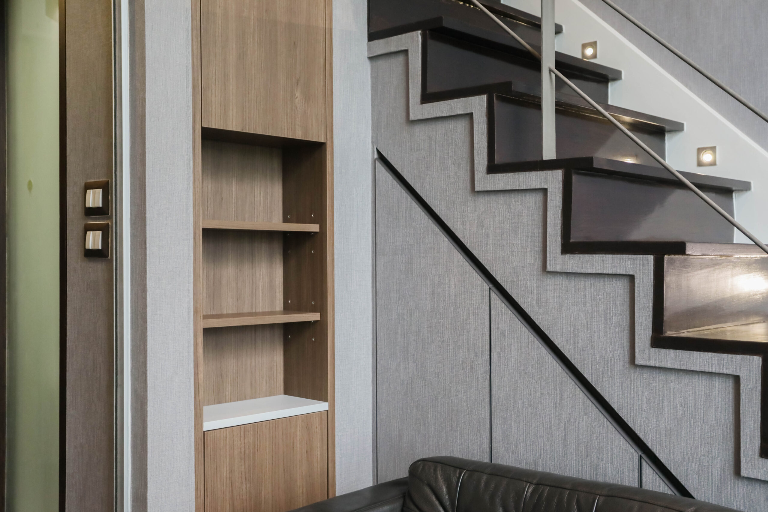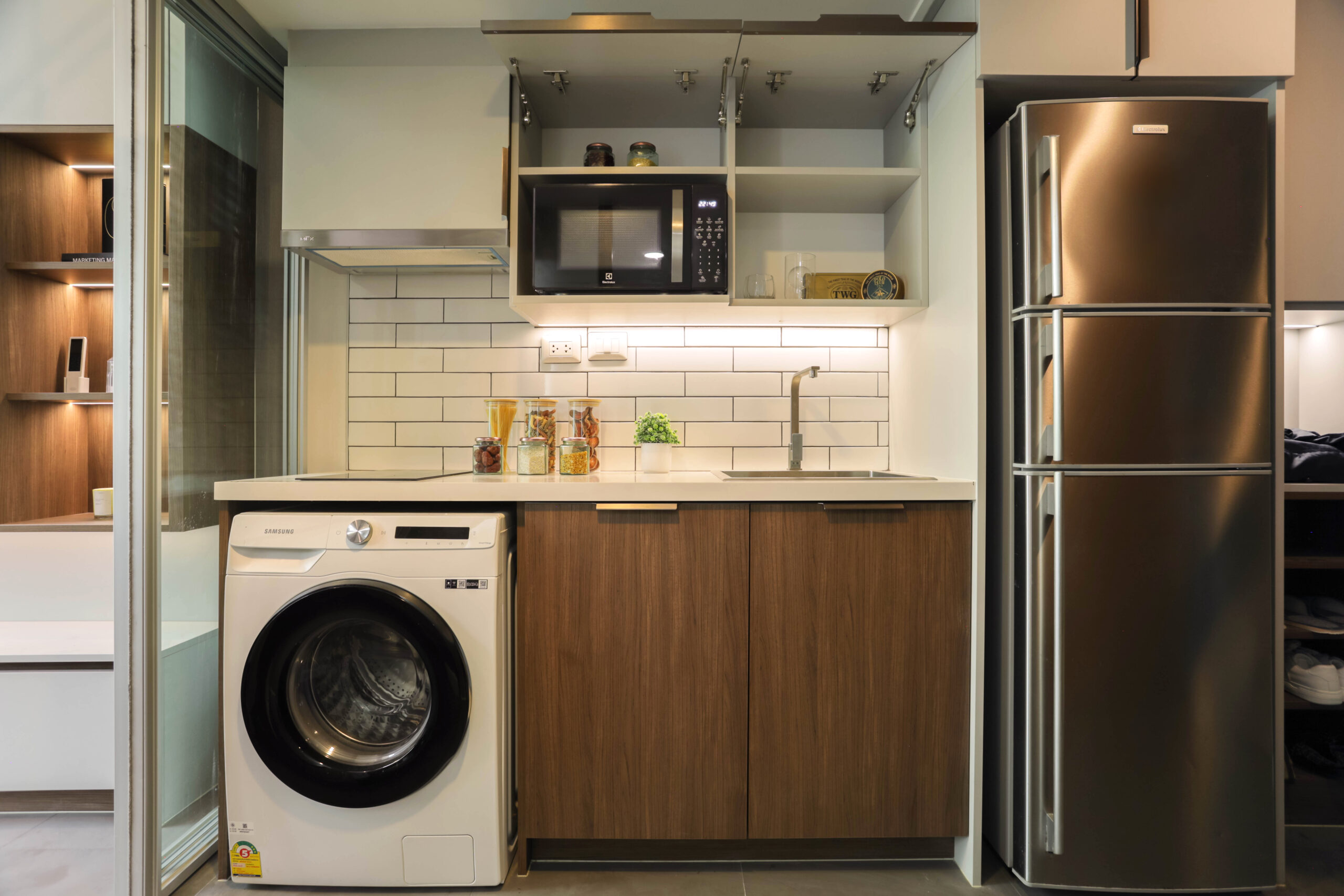 บิลท์อินคอนโดโทนโมเดิร์น–อบอุ่น: ผนังทีวี ชุดครัว มุมนั่งเล่น พื้นที่ทำงาน และตู้เก็บของ — เนี้ยบ คุมโทน เข้ากับสเปซจริง